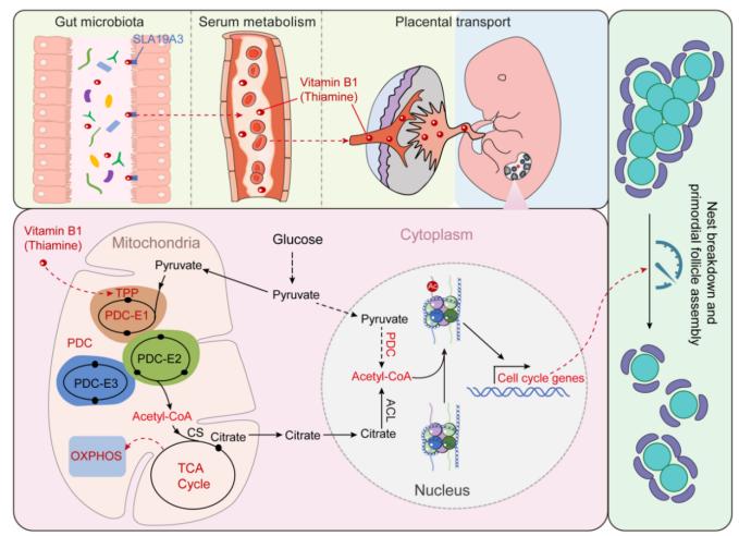 The regulation mechanism of maternal metabolite, vitamin B1, for the formation of primordial follicle of offspring