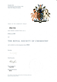 我校化学化工学院院长刘健教授当选英国皇家化学学会会士